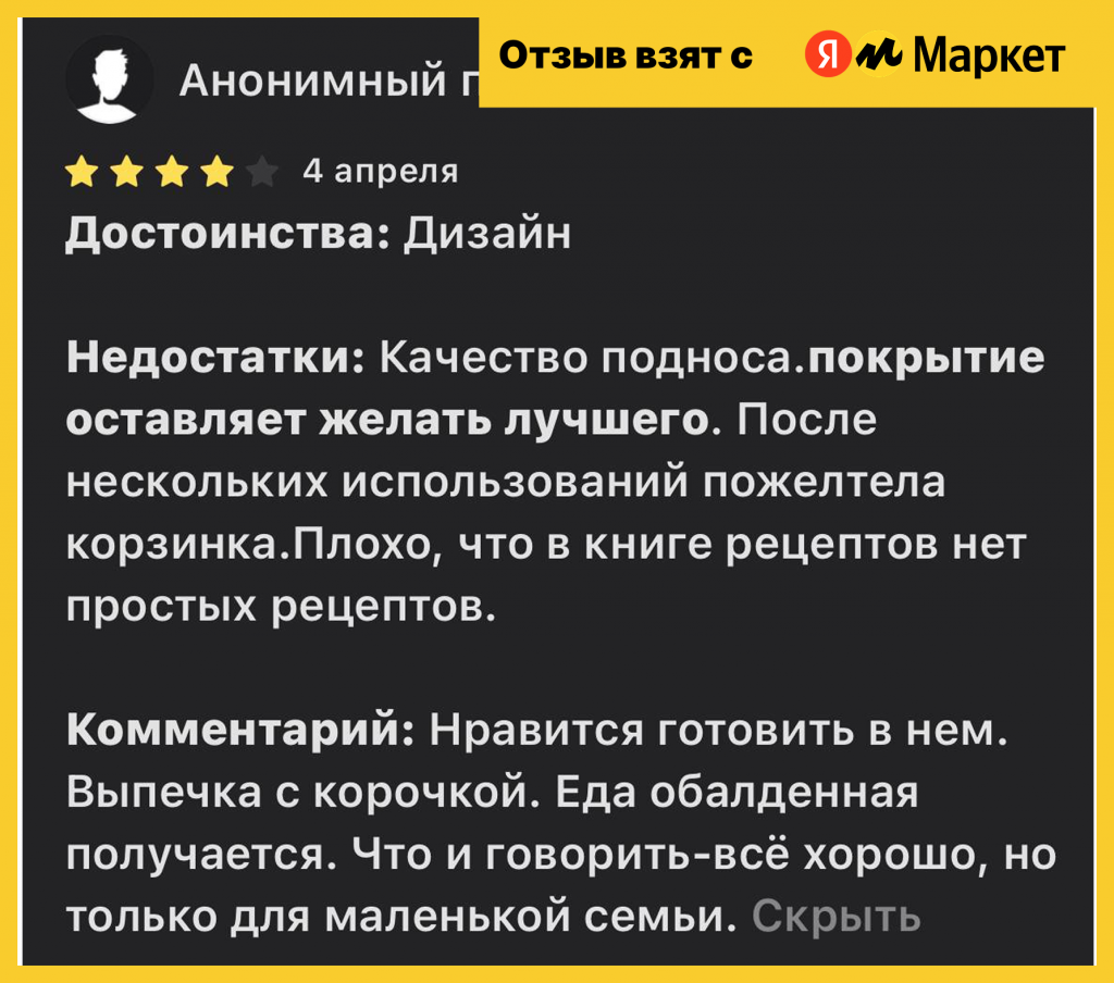 Однако пользователи отмечают, что при загрузке полной чаши мощности немного не хватает — крупные куски лучше готовить дольше или включать повторный цикл. Несмотря на это, REDMOND остаётся надёжным решением для ежедневной кухни, где важны простота и качество.