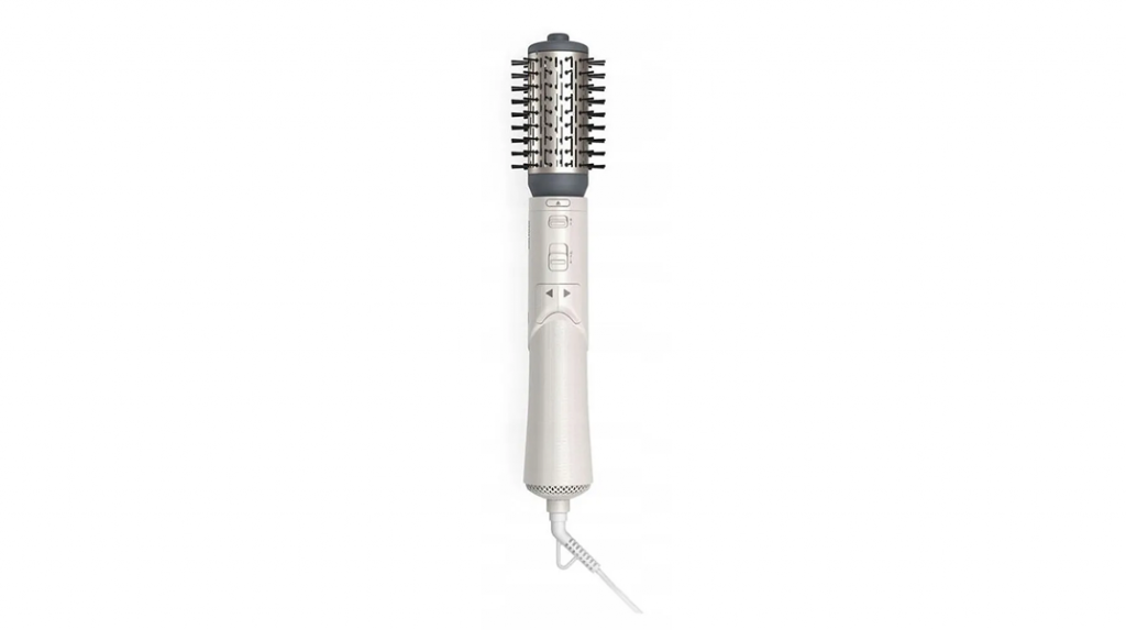 В комплект входят разнообразные насадки: коническая для локонов, цилиндрическая, круглые щётки и насадки для сушки. Также присутствует холодный обдув для фиксации прически, ионизация для минимизации статического электричества. Размер и габариты — 272 × 41 × 48 мм, вес около 550–600 г – достаточно манёвренное устройство.